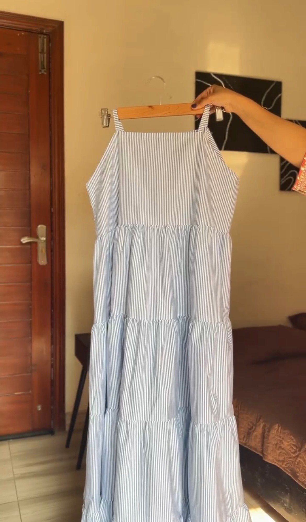 The subtle striped pattern adds a timeless charm, while the sleeveless cut makes it ideal for warm weather styling. Easy to dress up or down, this frock can be styled effortlessly for casual outings, day events, or everyday wear.