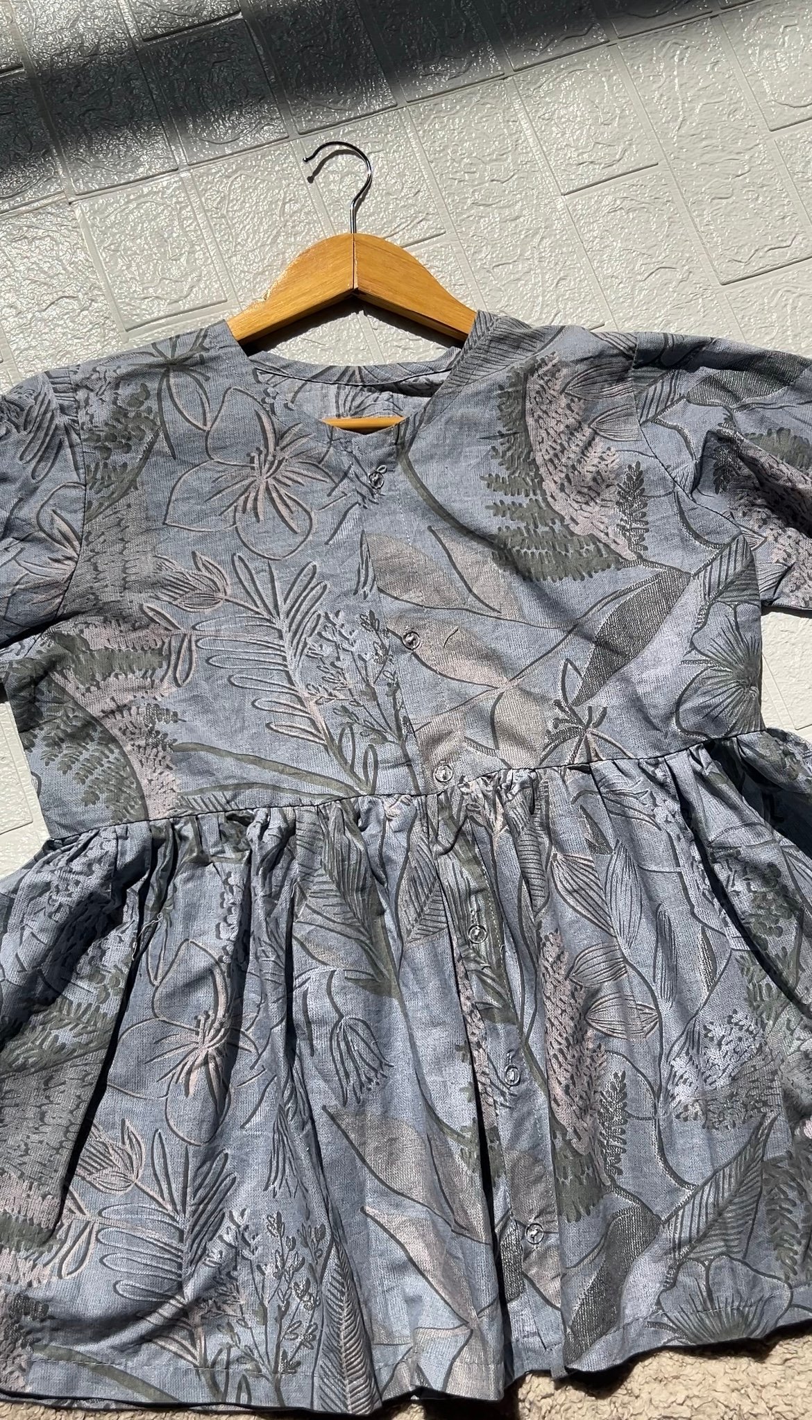 This elegant, flowing top (kurti) offers a graceful, relaxed silhouette with a charming traditional print, perfect for everyday sophistication or cultural gatherings.