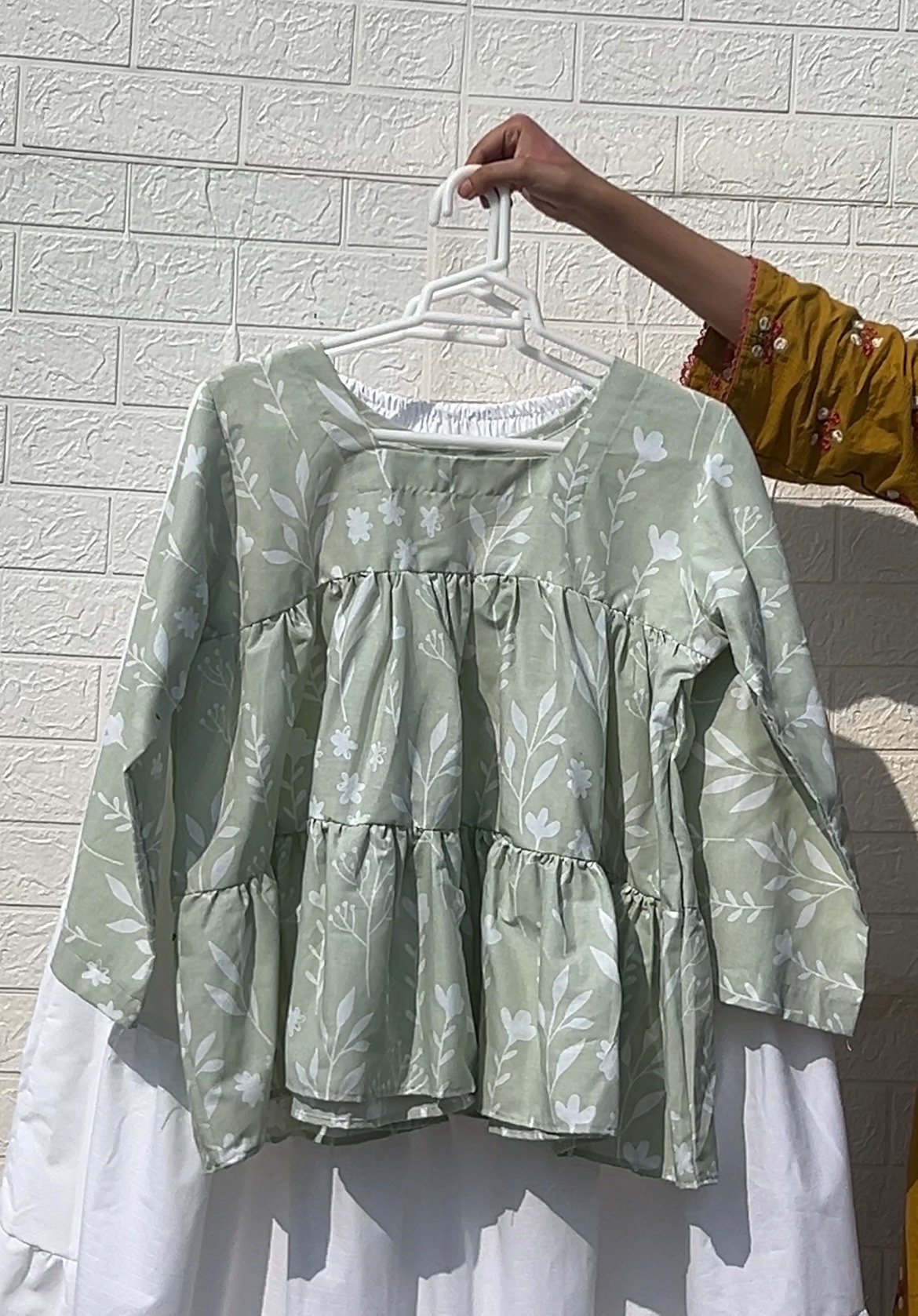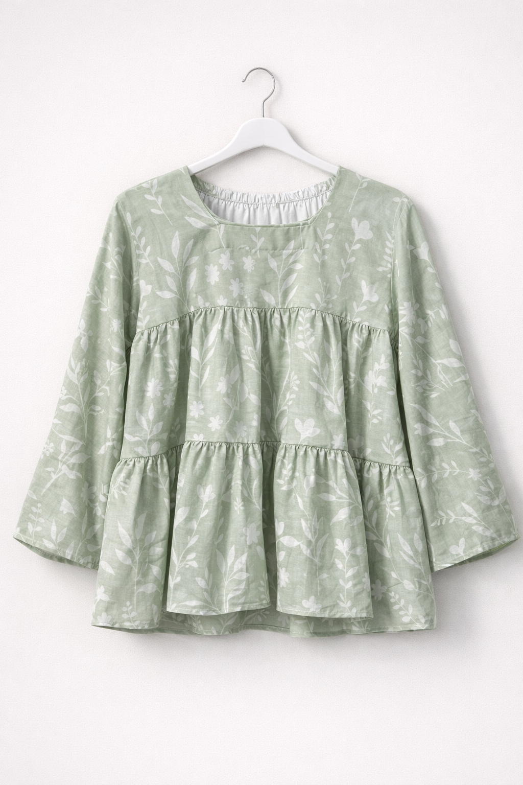 A lightweight breathable cotton top featuring a soft sage floral print and relaxed peplum silhouette. Designed for comfort and effortless elegance, perfect for daily wear in warm weather.