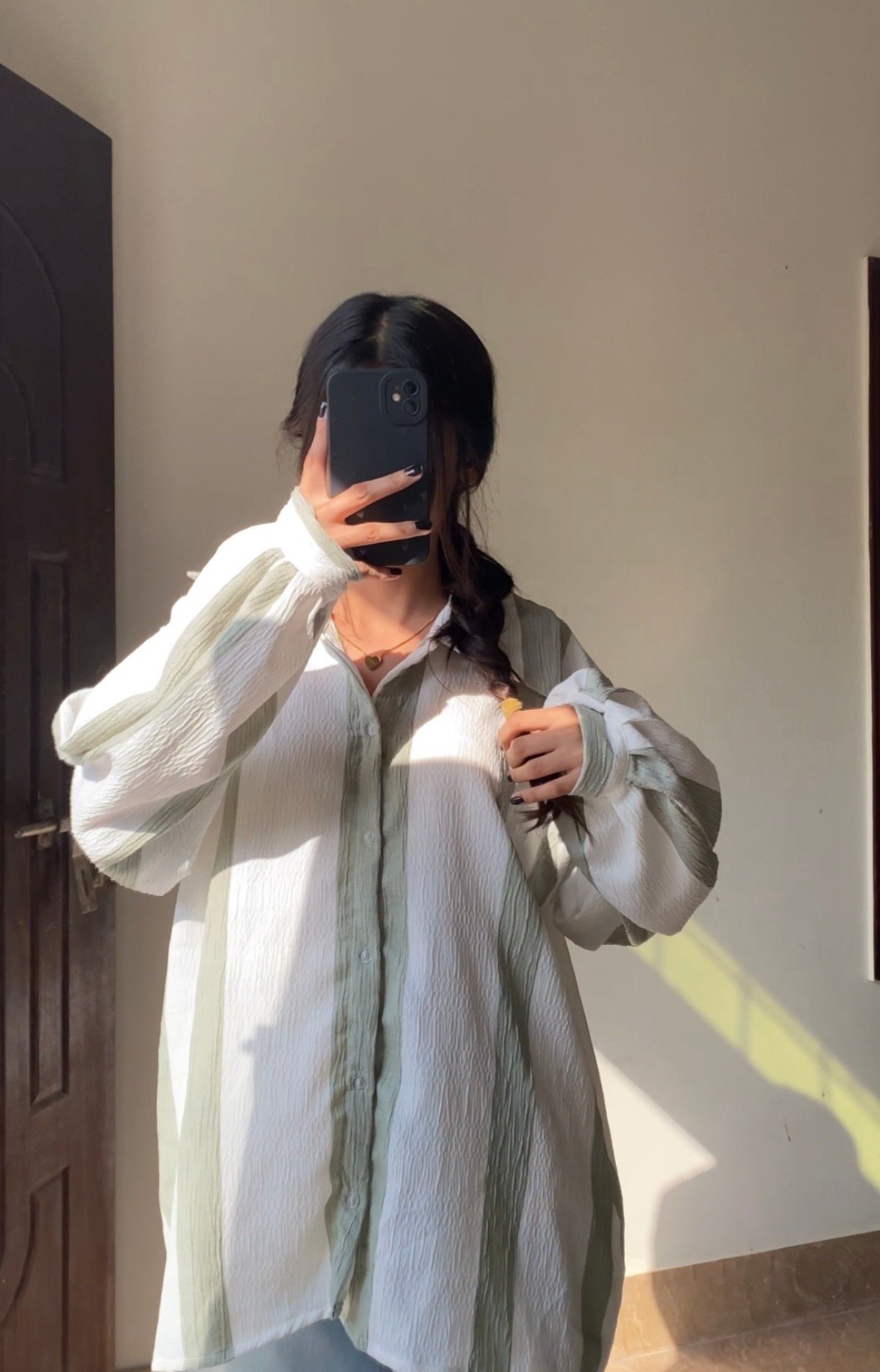 Embrace the relaxed luxury of our Crinkled Comfort Oversized Shirt. Made from soft, breathable stuffed cotton (referring to the substantial yet soft feel), the fabric features a beautiful, intentional crinkled texture.
