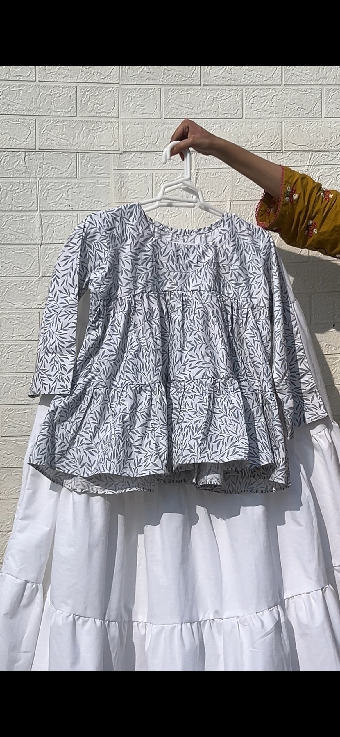 Featuring a soft leafy print with a relaxed silhouette and airy sleeves, it provides a neat modest look perfect for everyday wear.