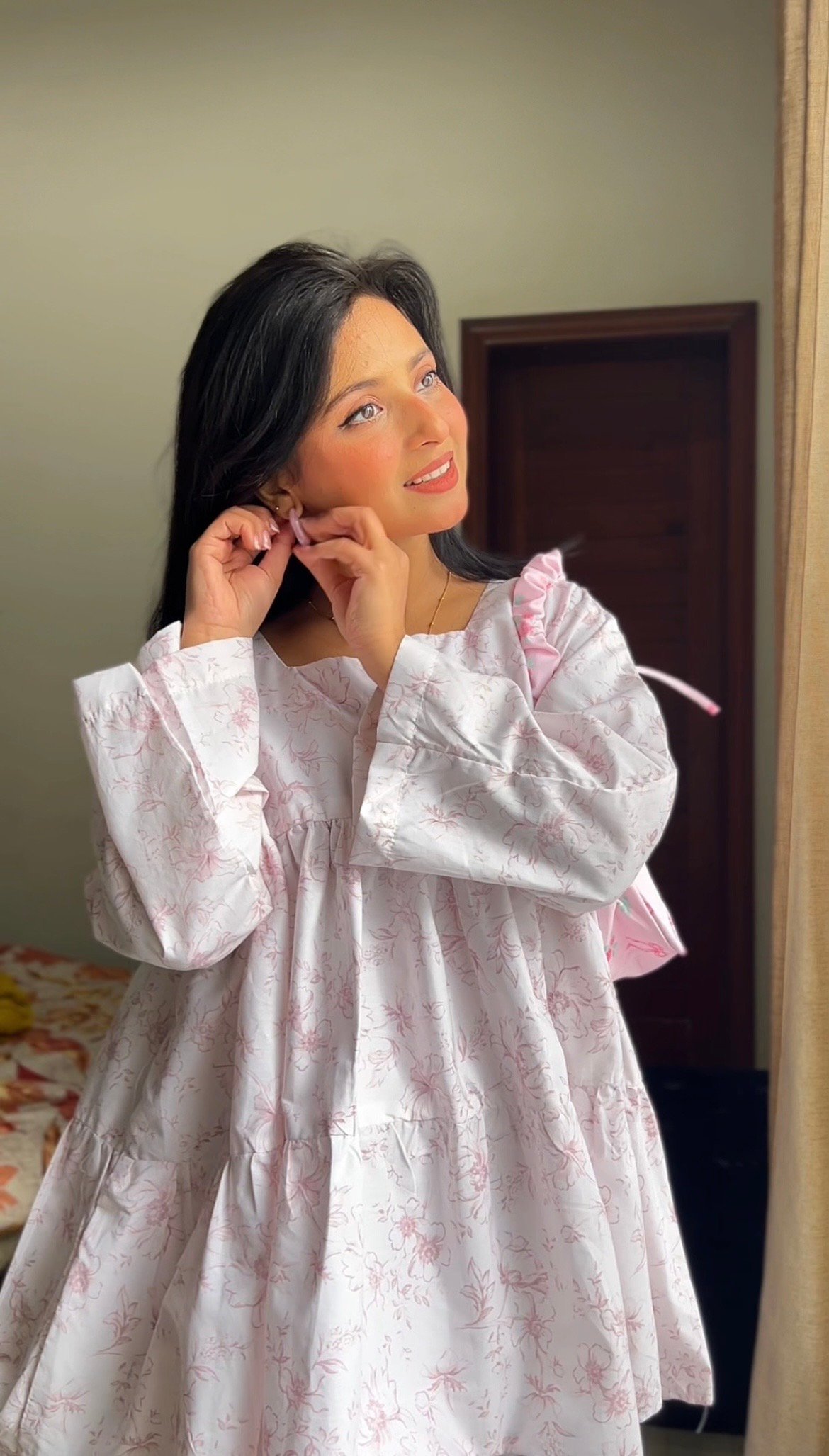 This beautifully crafted floral top features a soft lilac base with delicate pastel floral print, giving it a calm and feminine appeal. Designed with a relaxed, flowy silhouette and gathered waist, it offers both comfort and modest elegance.