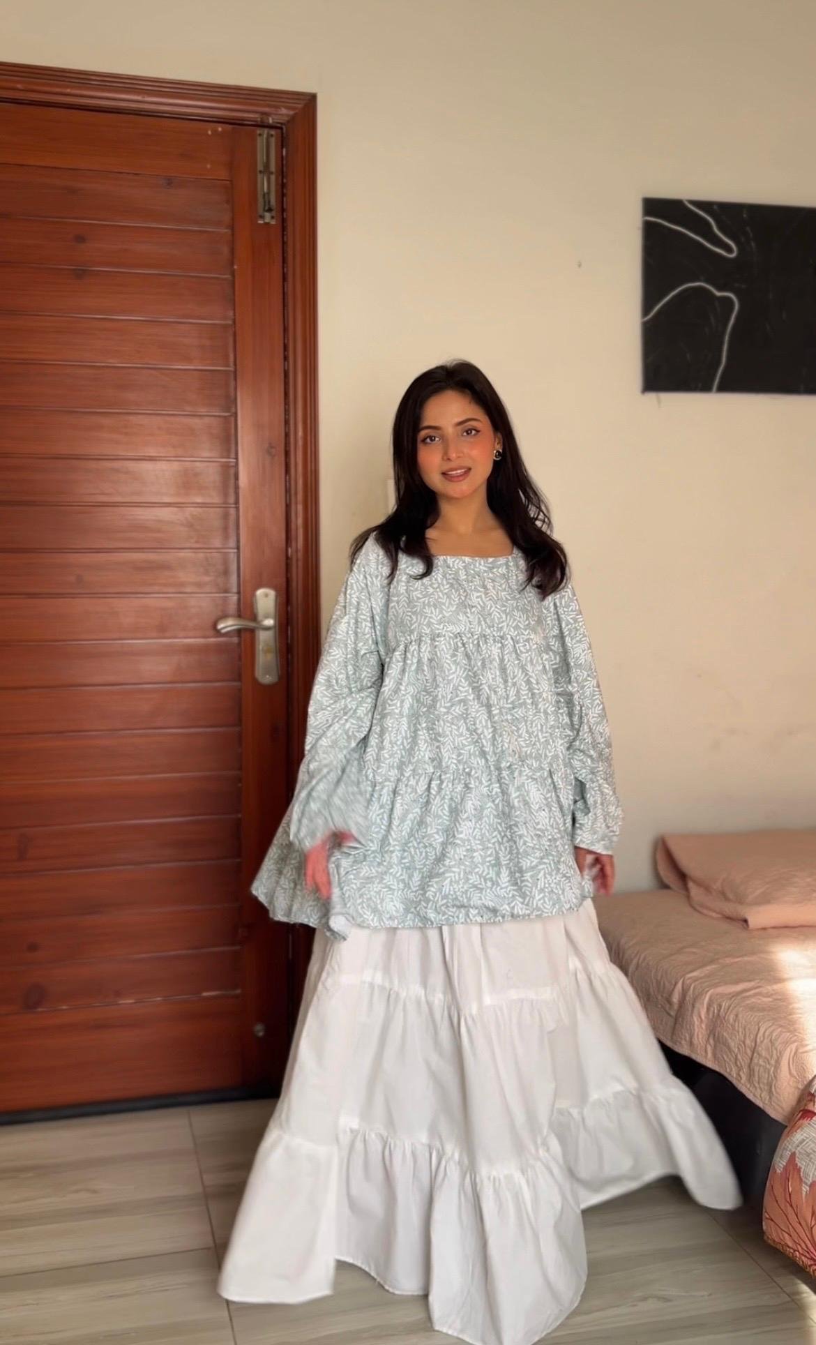 Botanical breeze printed kurti- a beautiful fusion of tradition and modern comfort. this piece is made from premium satin cotton that offers a subtle sheen and a luxurious feel against the skin .